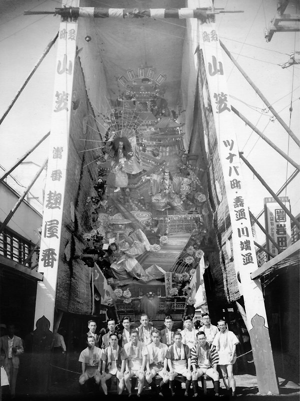 川端通商店街、麹屋番商店街)で建てた飾り山 当番は麹屋番 |