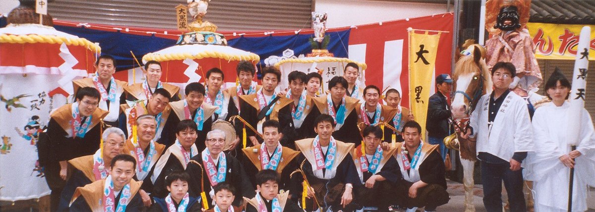 大黒流では只1町、旧「電車道」より岡側に位置し、「川端中央商店街」を形成している。山笠において、水法被は現在に至るも旧町のものを使用している。当番法被は、昭和45年より現在のものとなった。 [H17.1.11