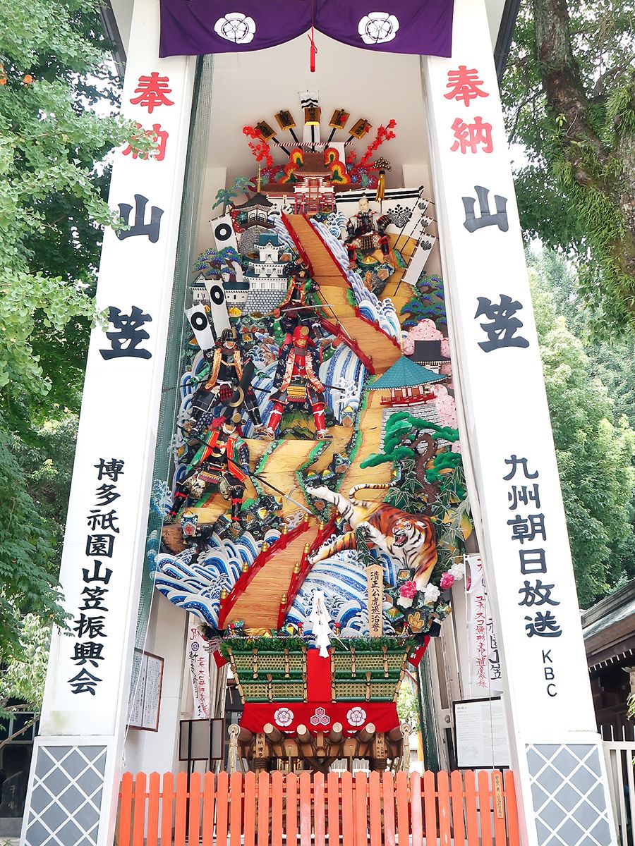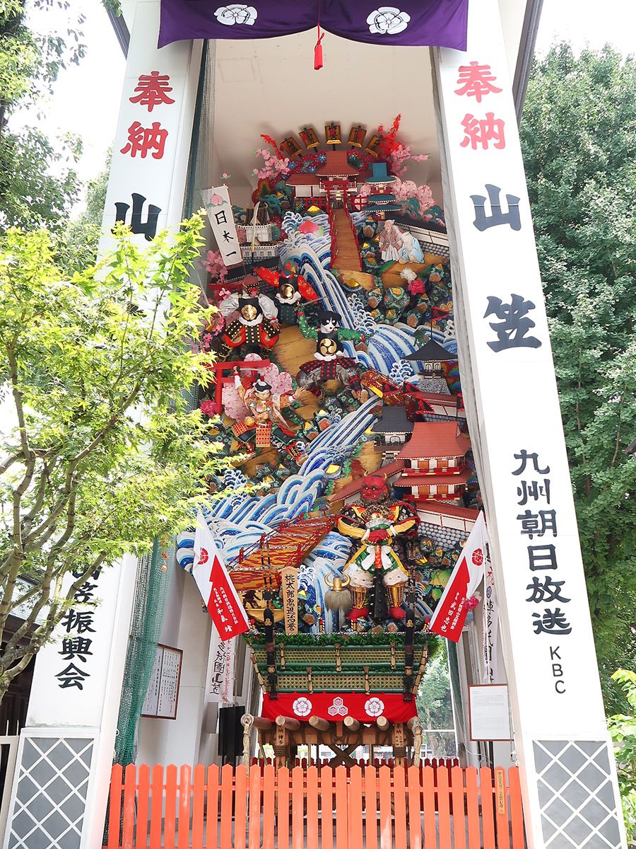 ( 4月に制作した博多松囃子の古式傘鉾3棹が御神幸に参加)