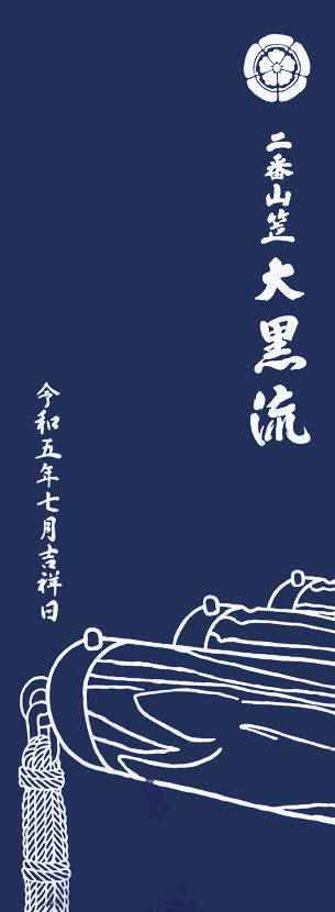 | 薫風は人々に涼をもたらし、清々しい気持ちにさせてくれます。大黒天の舞で薫風を巻き起こし、世の中に明るさをもたらしたいとの想いを込めています。