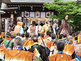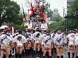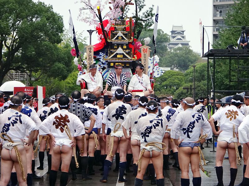 九州・山口地区38の祭りが熊本市に集結する「祭りアイランド九州」が開催され、28日の博多松囃子、29日の博多祇園山笠に大黒流からも大勢が参加しました。(写真:熊本城に向かい待機する山笠 棒捌きは博多祇園山笠振興会 樋口葛尚本部委員) 詳細