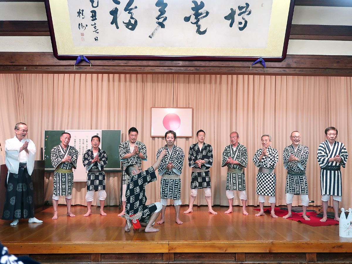 恒例の大黒流昭和会夏季懇親会が櫛田神社で開催されました。来賓として櫛田神社阿部宮司、博多中学校から吉村校長、福田教頭、博多小学校から浦川校長、大道教頭にご出席いただき、今年も大いに賑わいました。(写真:当番町すノ一の皆さん)