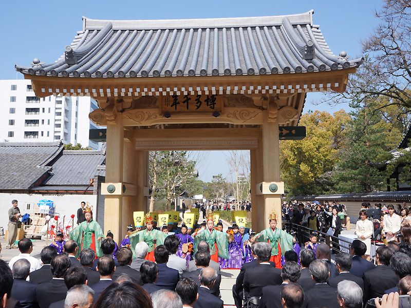 博多祇園山笠が静岡市で行われた徳川家康没後400年を記念したイベントに参加しました。4月3日から三日間開催された静岡まつりの最終日、勇壮な家康公の人形を飾り付けた山笠を各流から参加した約400名の舁き手が静岡市内の中心地約1kmを舁いて披露しました。標題は「天下泰平礎」、人形の制作は大黒流の宗田智幸氏です。当番町川端町の皆さん、参加された皆さんお疲れさまでした。