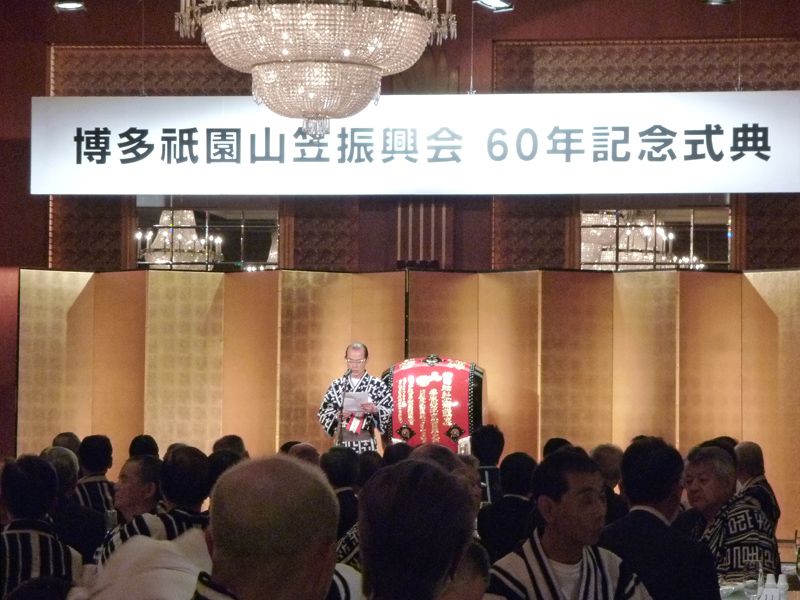 恒例の大黒流昭和会夏季懇親会がホテルオークラ福岡で開催されました。来賓として櫛田神社阿部宮司、博多中学校櫻木校長、博多小学校鍋島校長にご出席いただき、今年も大いに賑わいました。 (写真:当番町すノ三の皆さん)